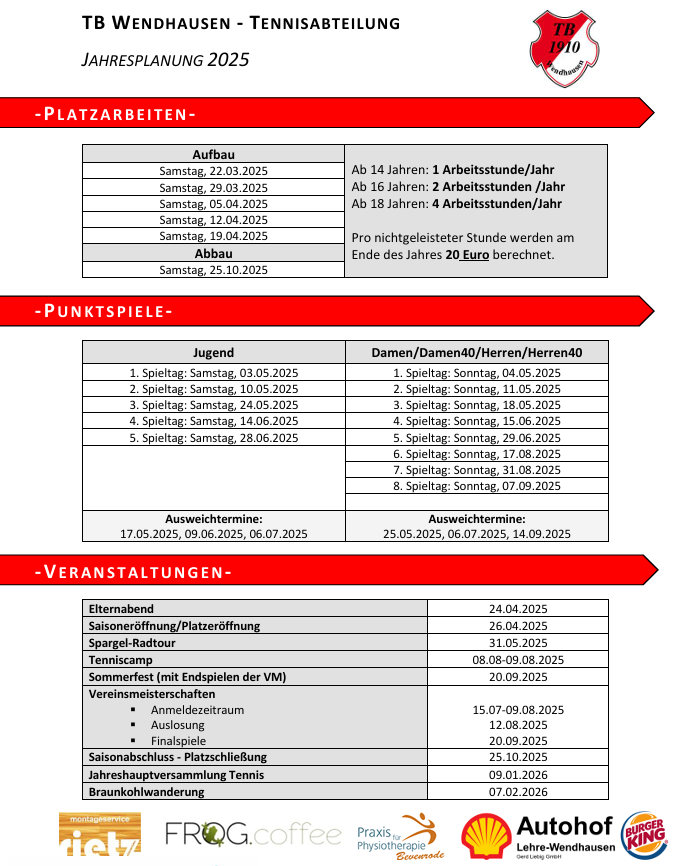 im Anhang findet ihr die terminliche Planung für unser Tennisjahr 2025.